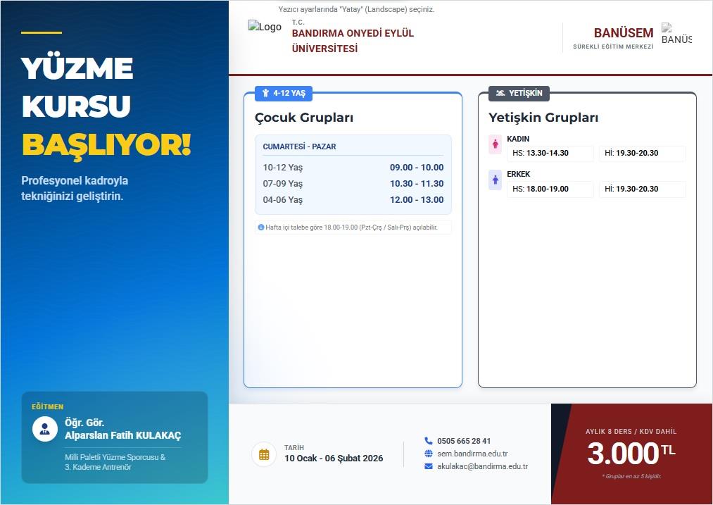 5-15 Yaş çocuklar için çeşitli branşlarda kurslar açılacaktır.