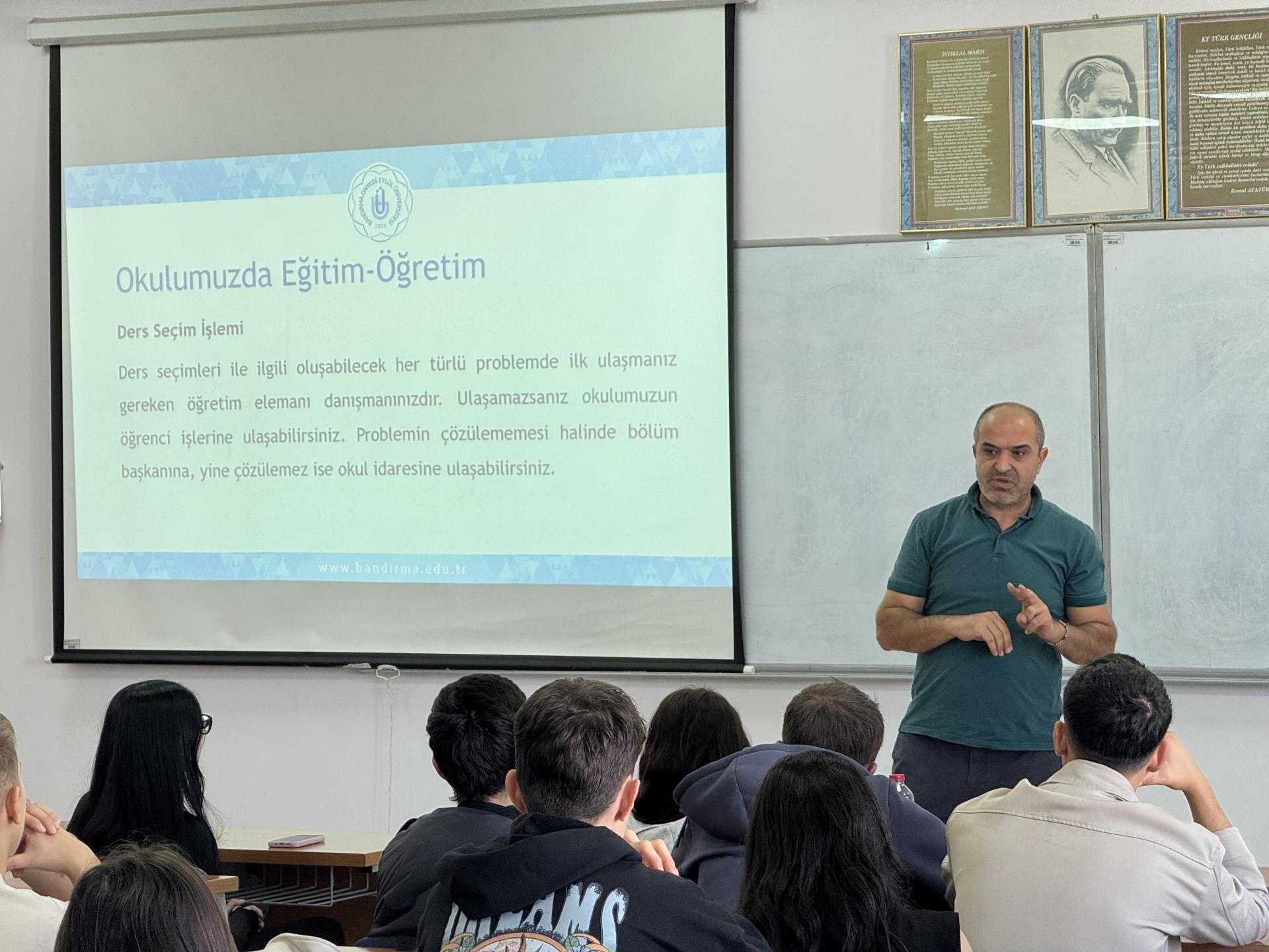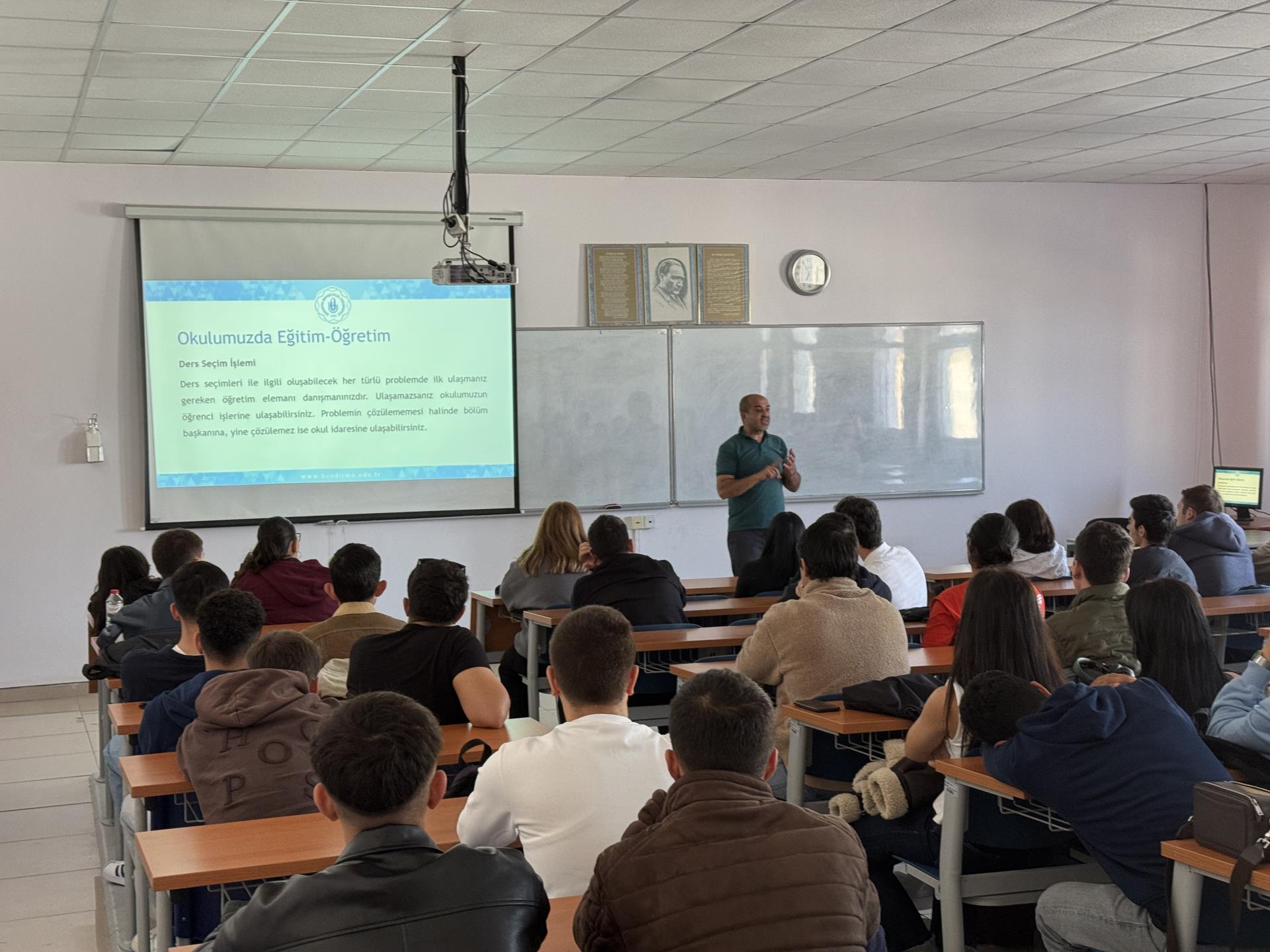 2025-2026 Eğitim-Öğretim yılında yeni kayıt yaptıran öğrencilerimize yönelik oryantasyon programı, 2 Ekim 2025 Perşembe günü gerçekleştirilmiştir. Program kapsamında üniversitemiz ve meslek yüksekokulumuz hakkında genel bilgilendirmeler yapılmış, akademik ve idari süreçler tanıtılmıştır. Ayrıca kalite süreçleri ve öğrencilerimizin bu süreçlere katkısının önemi üzerinde durulmuştur.