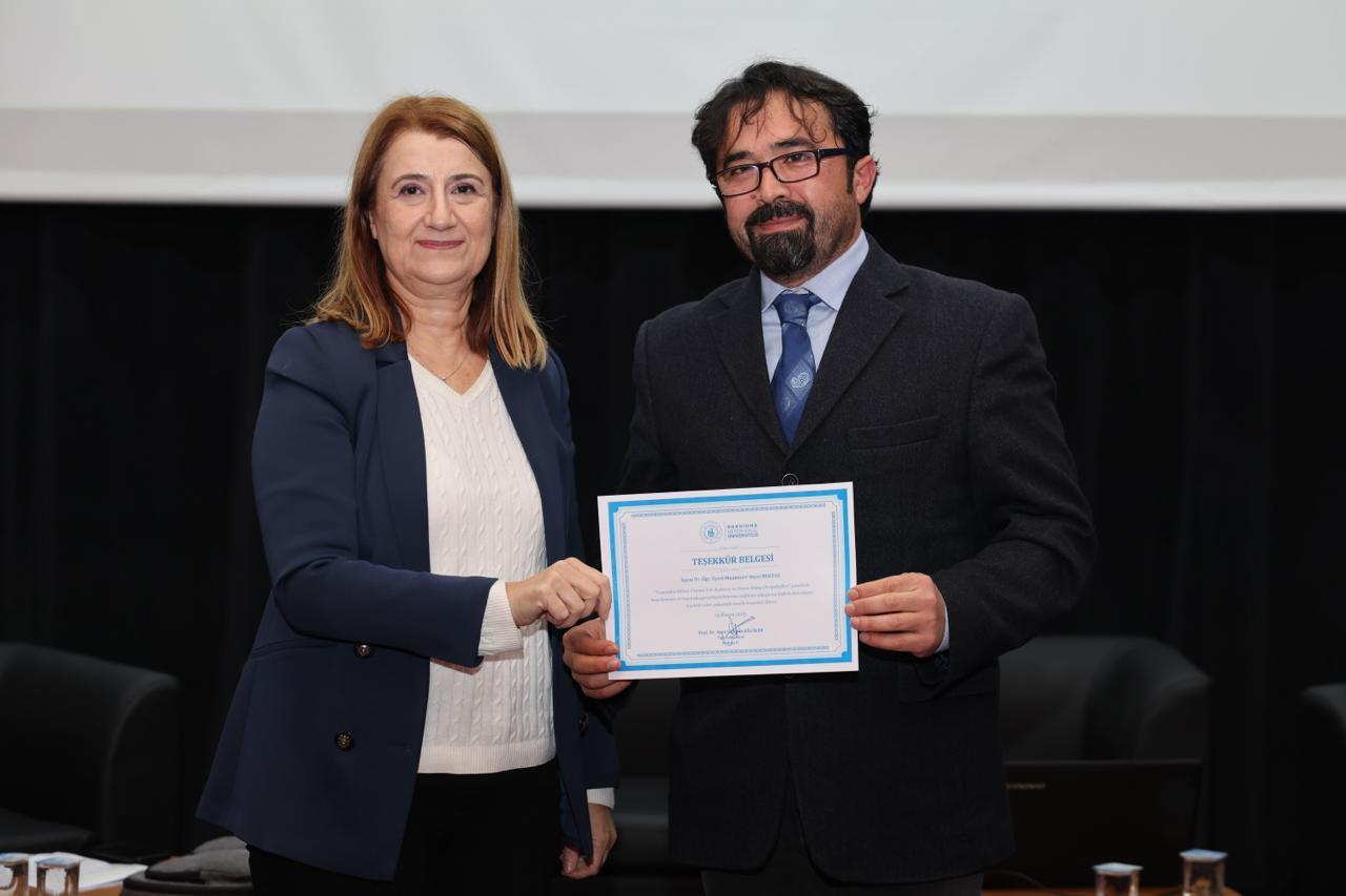 Panelin sonunda Tıp Fakültesi Dekanımız Prof. Dr. Ayşe Güldem Kilciler tarafından konuşmacılara teşekkür belgeleri takdim edildi. Etkinlik toplu fotoğraf çekimiyle sona erdi.